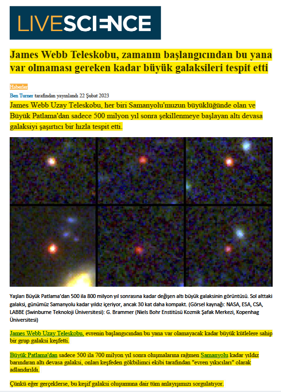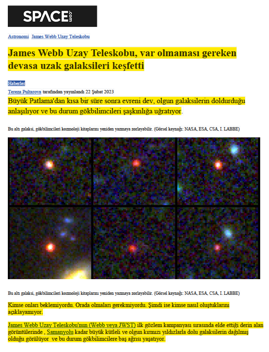 .............""James Webb Uzay Teleskobu, var olmaması gereken devasa uzak